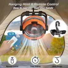 Whether you’re deep in the woods, camping under the stars, or enjoying a peaceful night on your patio, this Portable Camping Fan with 20000mAh Battery is your ultimate outdoor companion. Designed for versatility and convenience, it combines powerful airflow, a built-in LED light, and a massive rechargeable battery into one compact unit. No cords, no hassle—just reliable cooling and lighting, whenever you need it.